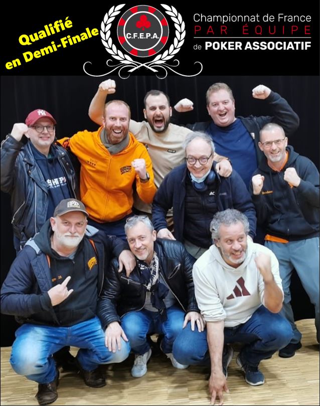 2ème demi-finale nationale du Championnat de France par Equipe de Poker Associatif (feu C.N.E.C.) en 3 ans de participation pour le club !
